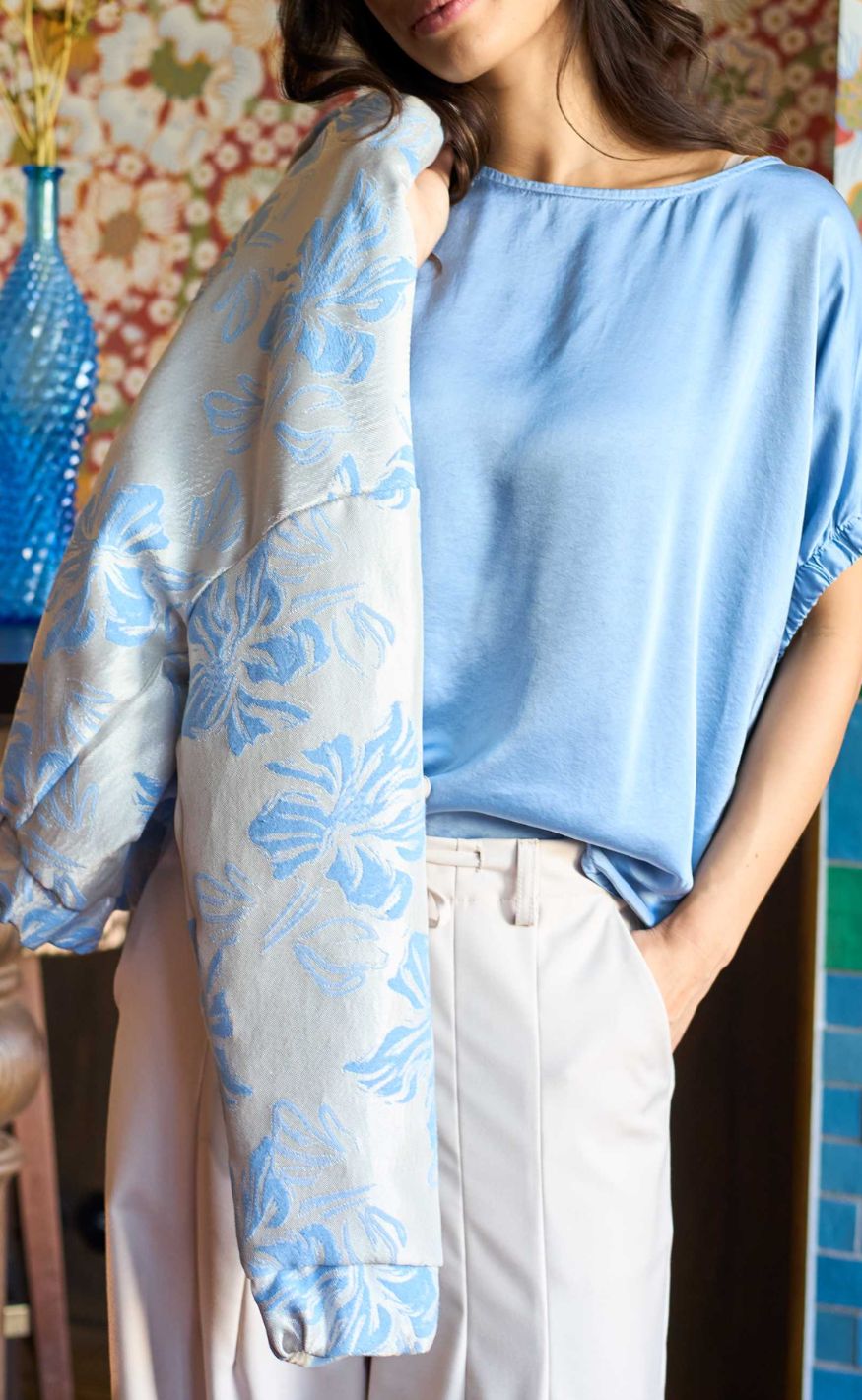 Black Colour Bluse - Mabel - Dust Blue