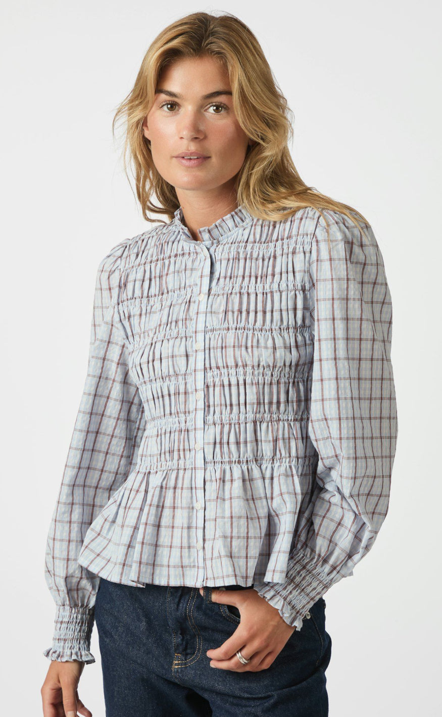 Neo Noir Bluse - Mocca - Light Blue