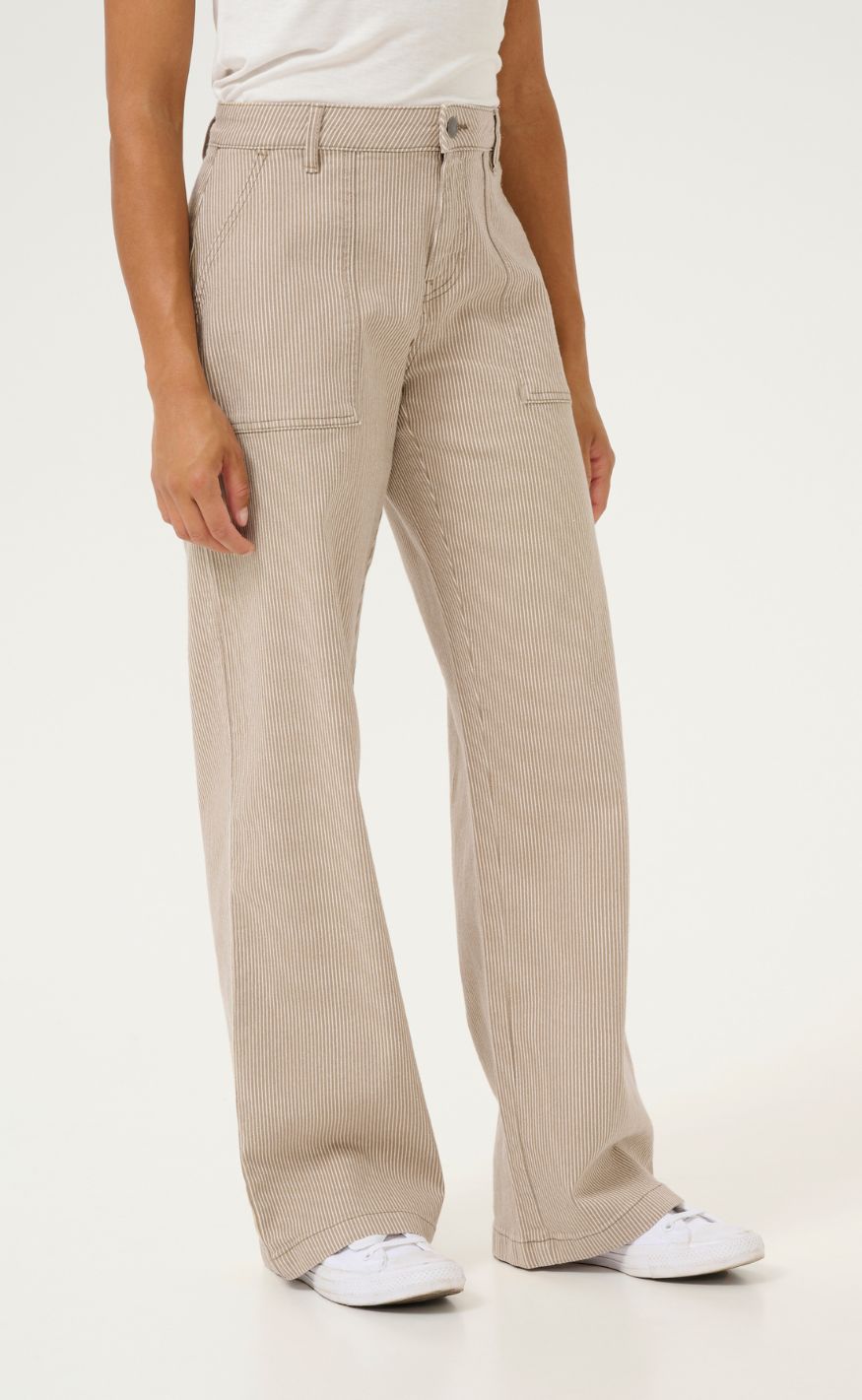 Culture Bukser - Milky - Dune/White Stripe