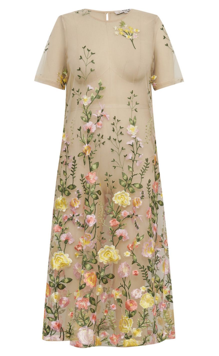 A-View Kjole - Fuschia Midi - Sand/Yellow