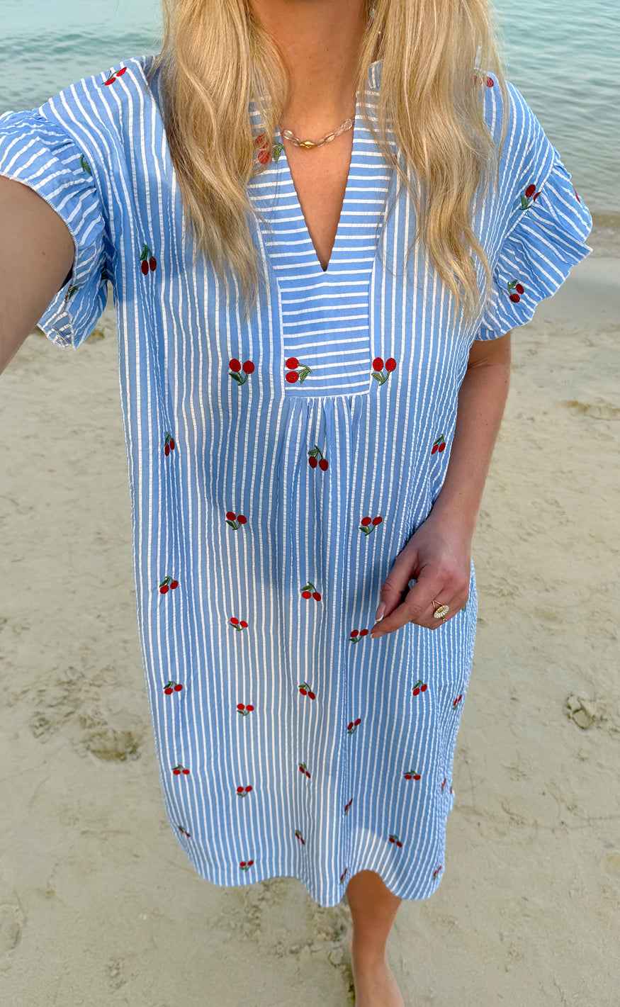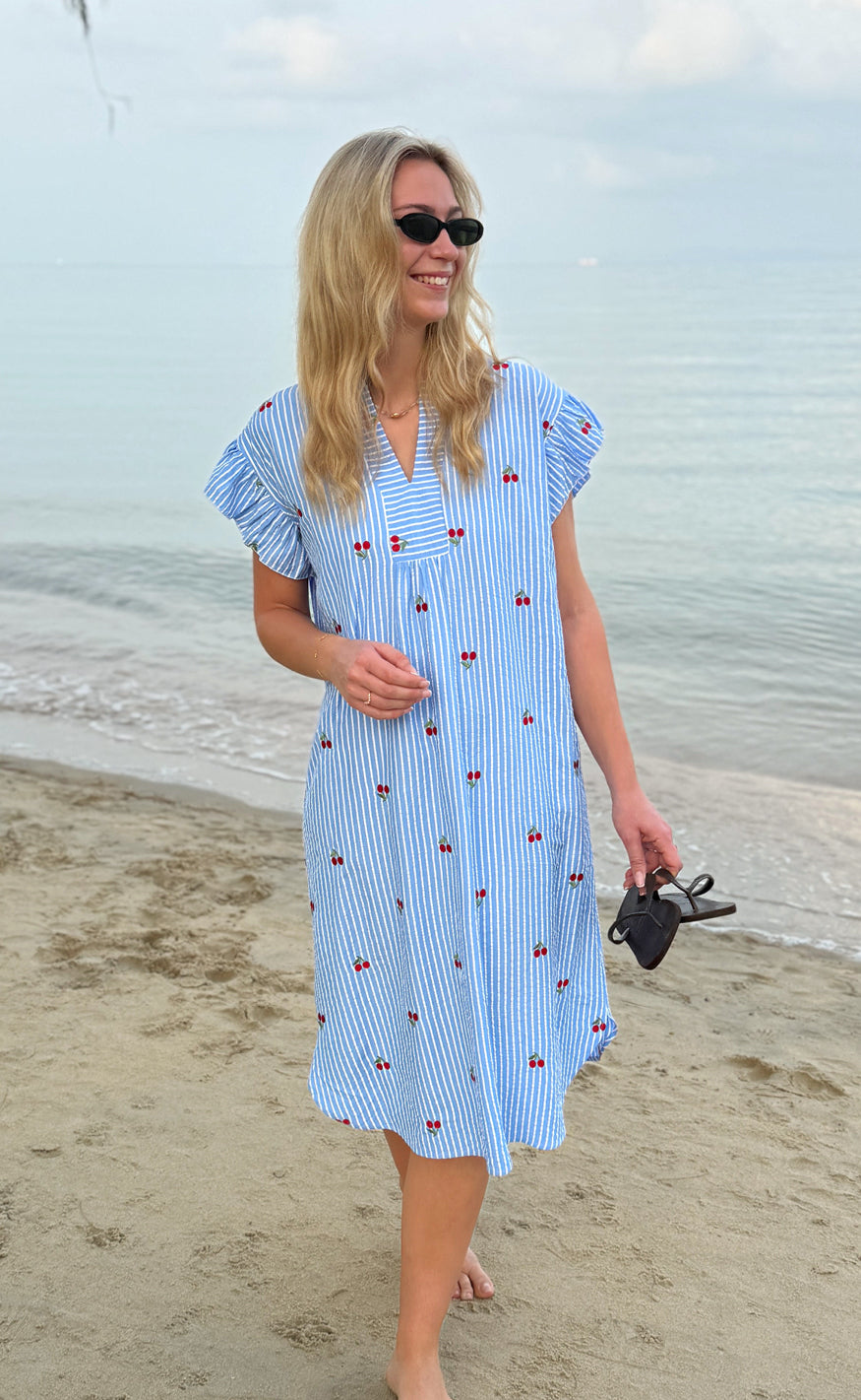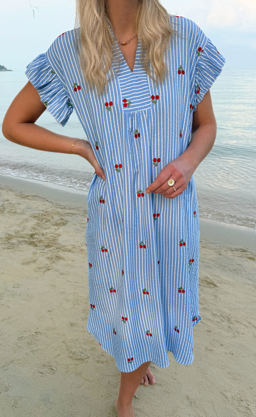 Say INA Copenhagen Kjole - Winnie - Blue Striped W. Cherries