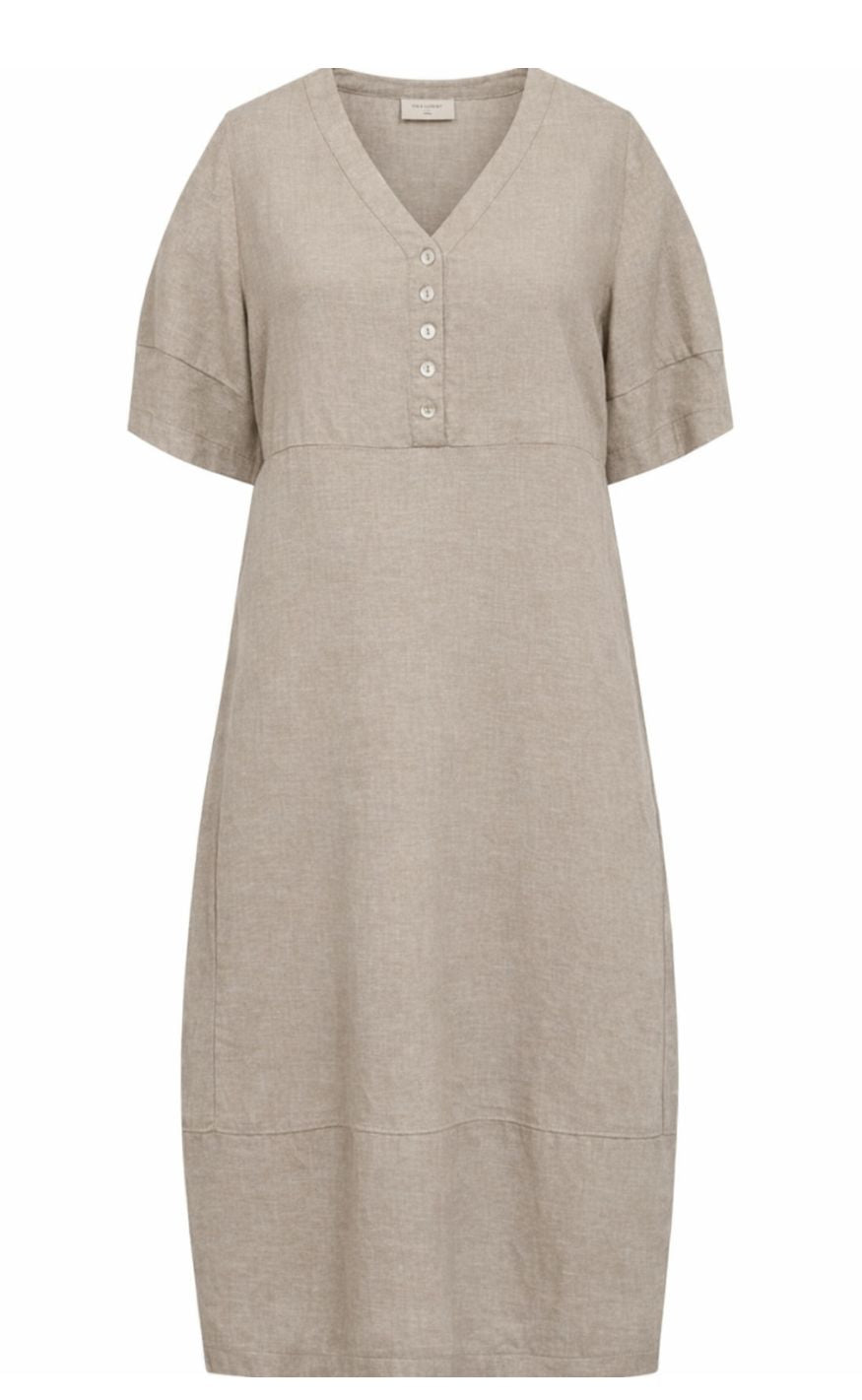 Freequent Kjole - Lava SS V-neck - Sand Melange
