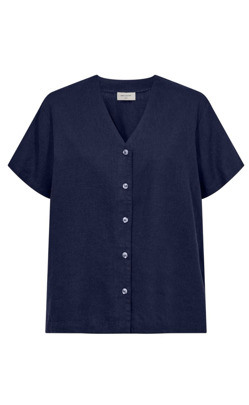 Freequent Skjorte - Lava SS V-neck - Navy Blazer