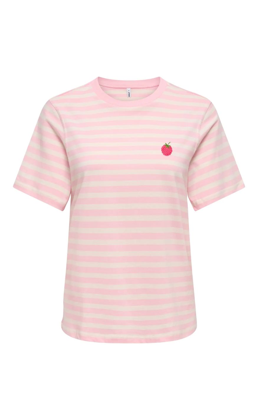 ONLY T-shirt - Livina - Rosy Touch/ Cloud Dancer/ Raspberry