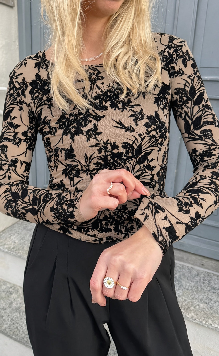 Say INA Copenhagen Bluse - Sophia Mesh - Beige W. Black Flowers