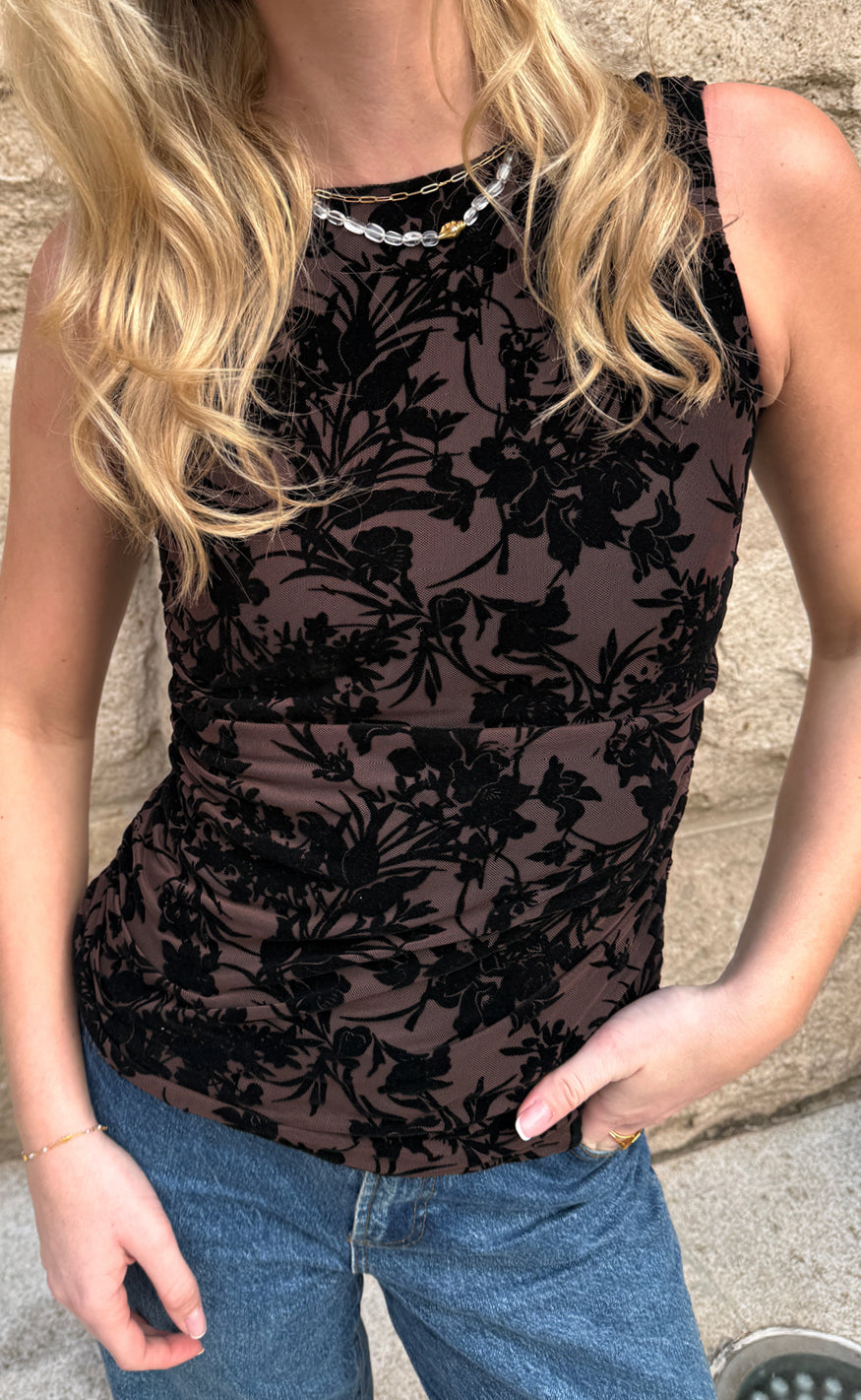 Say INA Copenhagen Topp - Sophia Mesh - Brown Flower
