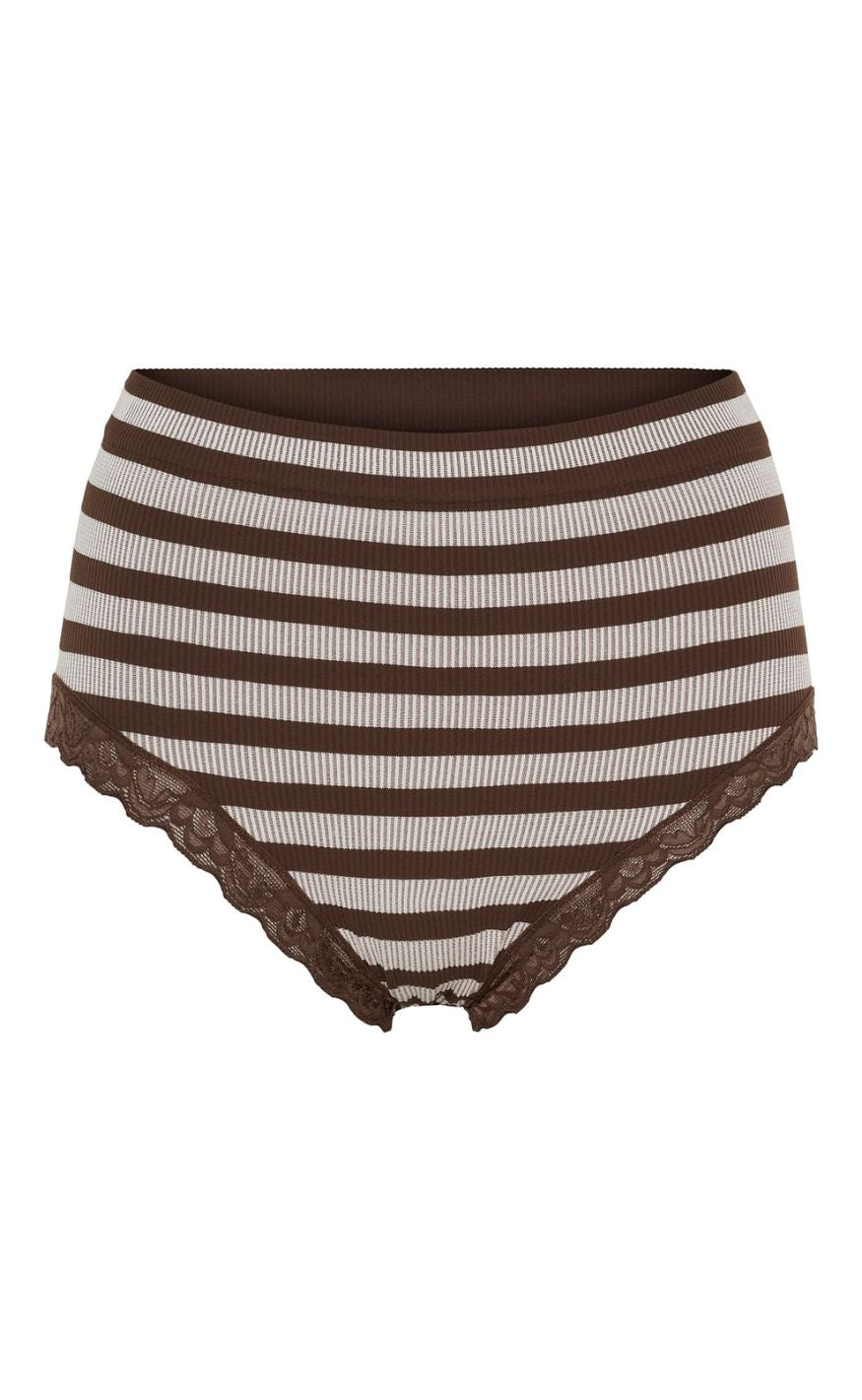 Tim & Simonsen Truse - Isa Stripe Rib Midi Lace - Cioccolato/Bianco