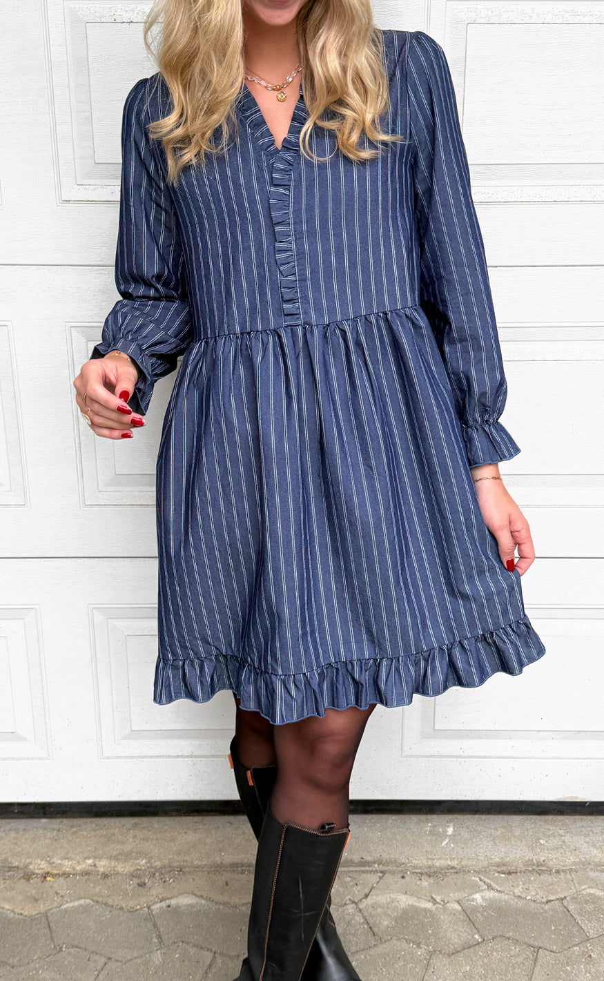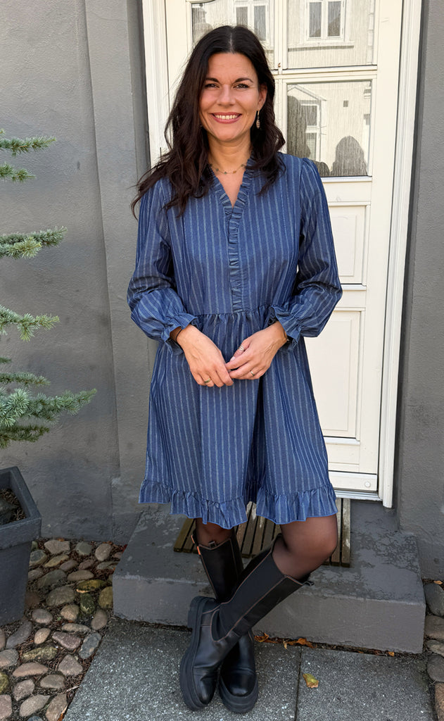 Say INA Copenhagen Kjole - Catja Short - Dark Denim Blue W. Pinstripe