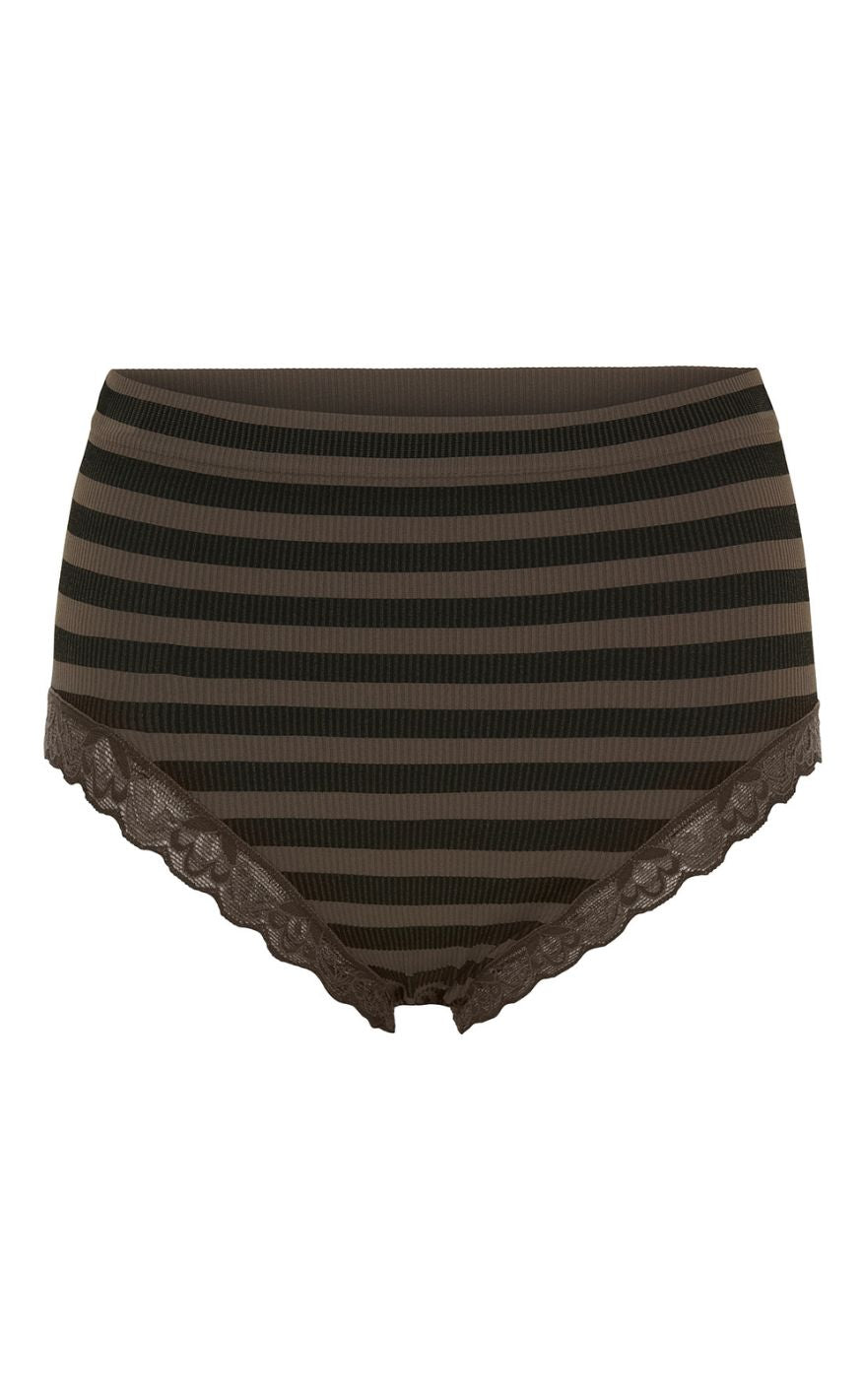 Tim & Simonsen Truse - Isa Stripe Dark Rib Midi Lace - Nero/Noce