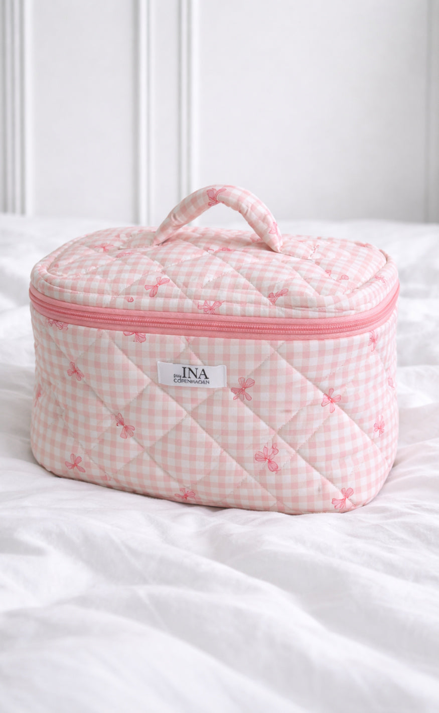 Say INA Copenhagen Makeup Veske - Big - Pink Checks W. Bows