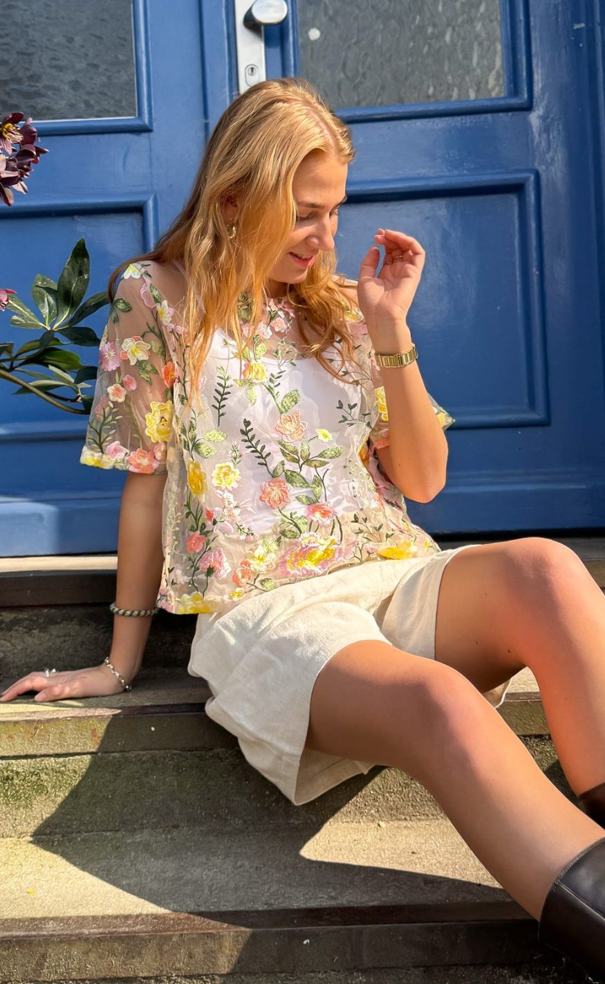 A-View Bluse - Fuschia - Sand/Yellow