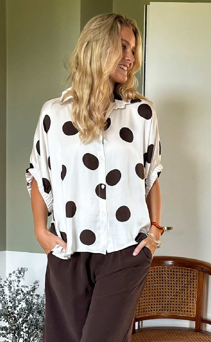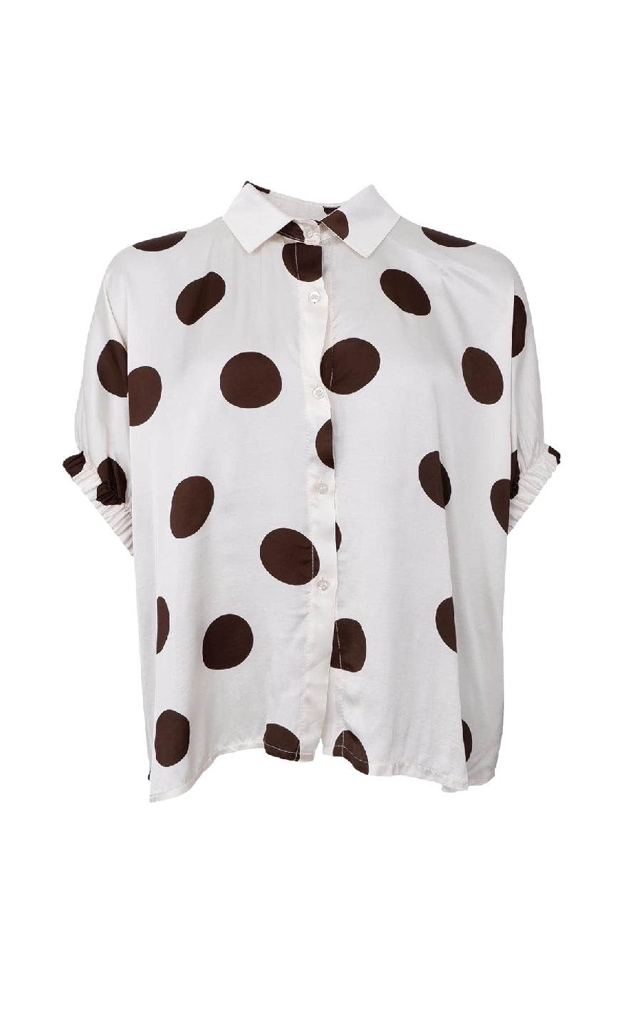 Black Colour Bluse - Mabel - Off White Dot