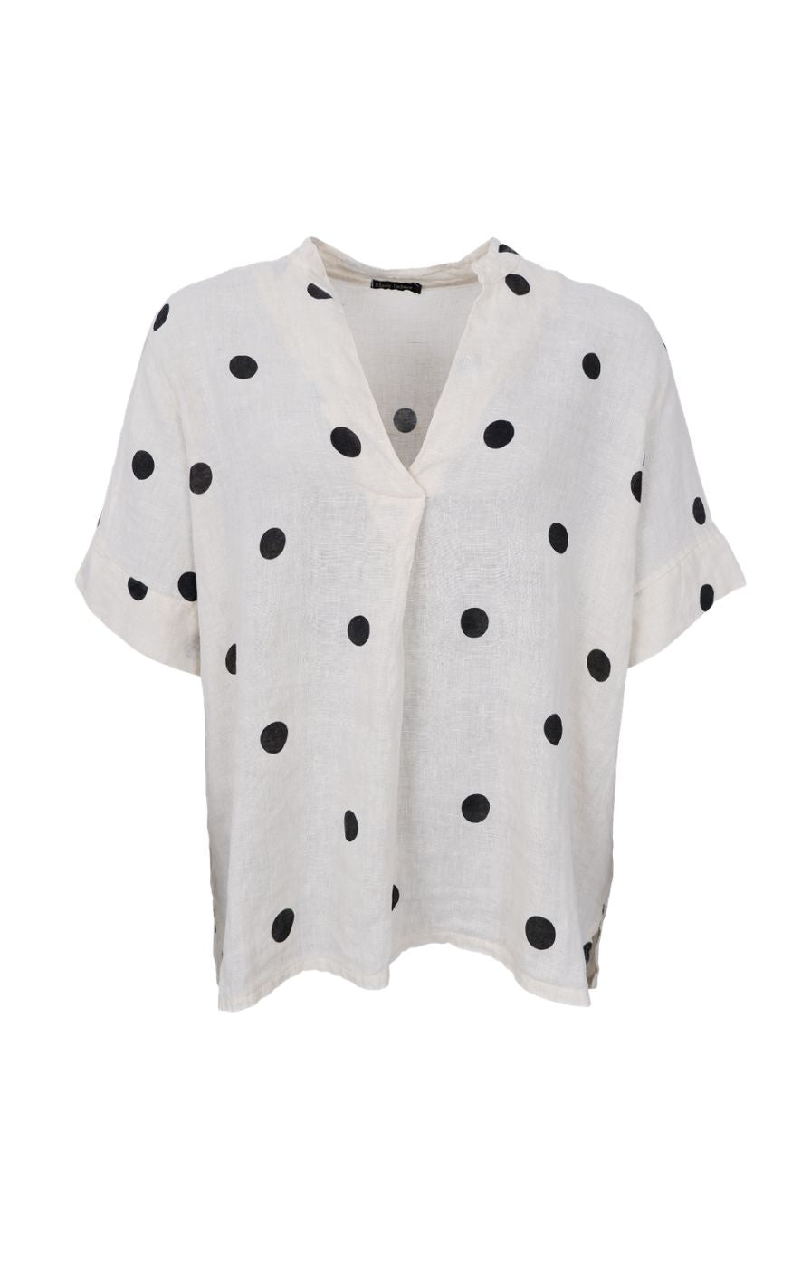 Black Colour Bluse - Melina SS Linen - Dot