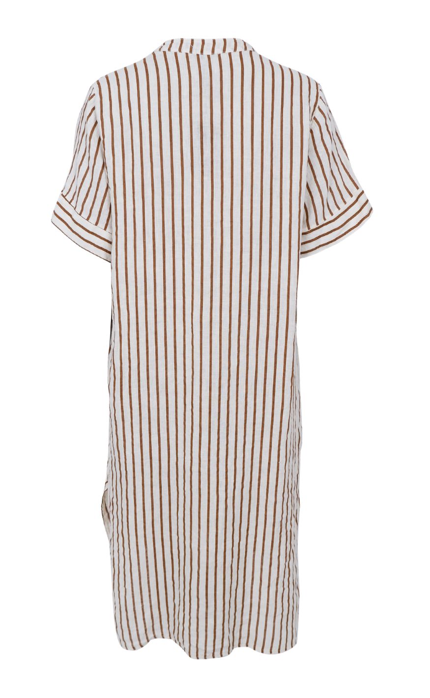 Black Colour Kjole - Melina Long Linen - Camel Stripe