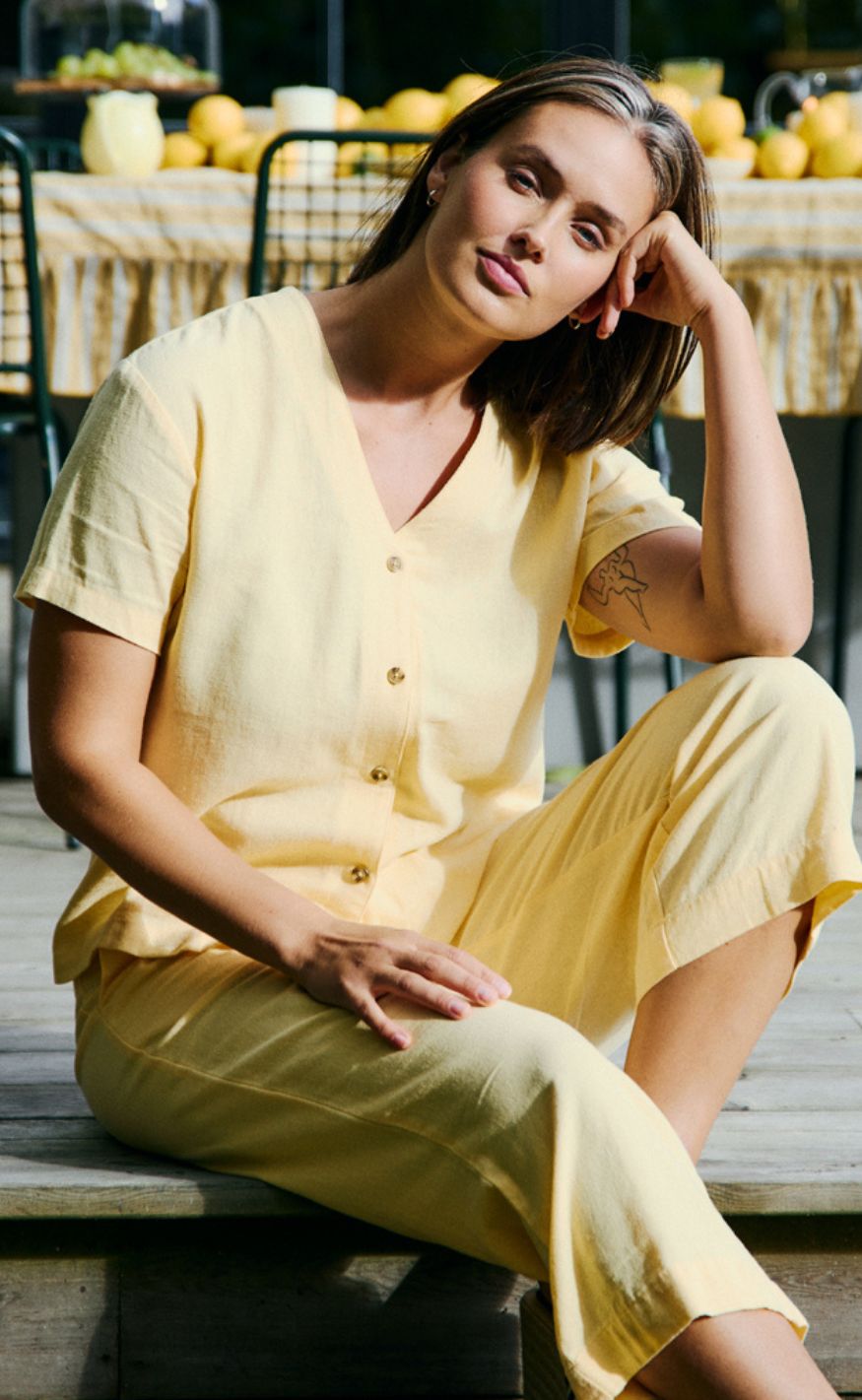Freequent Skjorte - Lava SS V-neck - Golden Haze