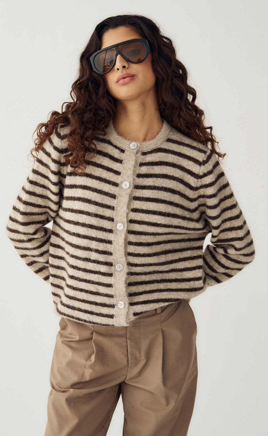 Noella Cardigan - Mertice - Brown Sand Stripe
